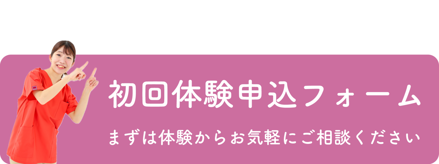 | 02 | 初回無料体験 無料体験では、お身体の状態の問診、施術内容の説明を行った後に、施術を行います。その後、施術費用やお支払いなどシステムについてご説明いたします。(ご家族様同席の上での施術を推奨しております。) |